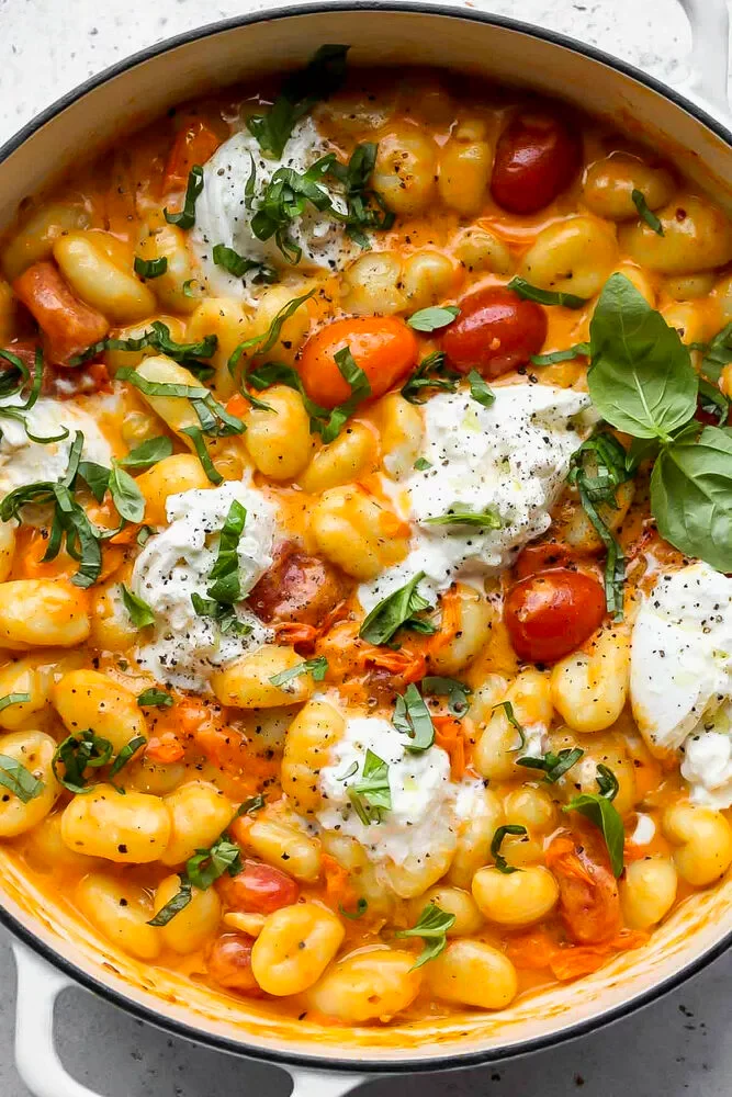 23. 30-Minute Creamy Tomato Gnocchi with Burrata