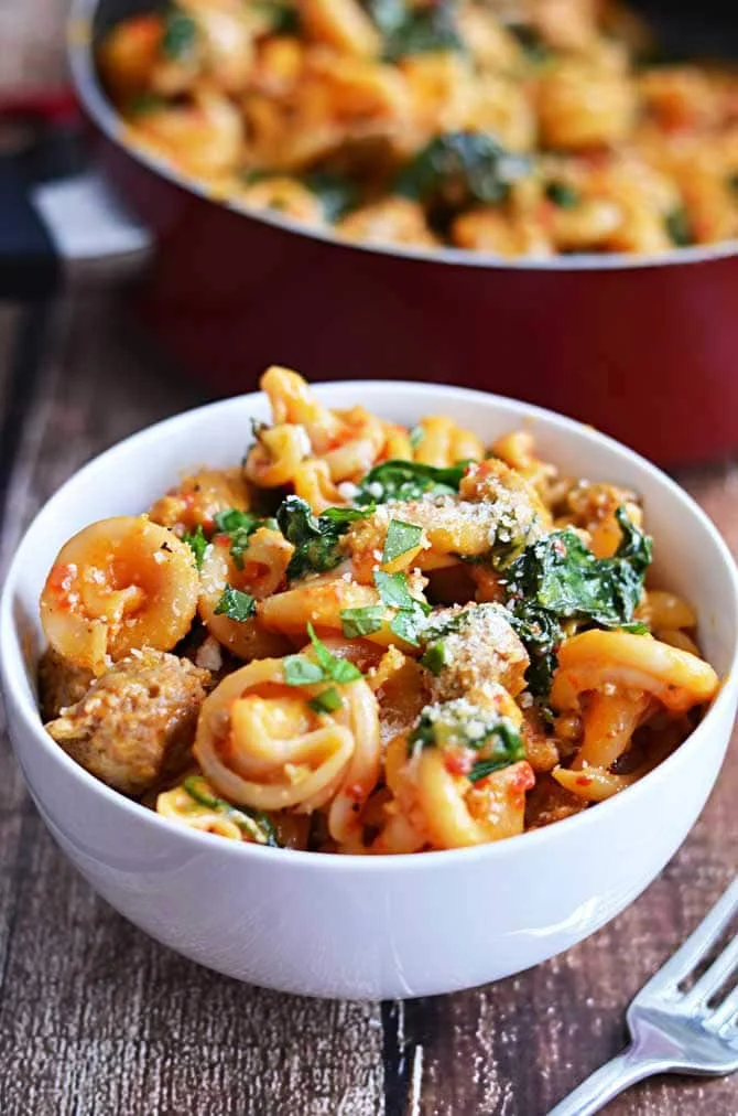 This recipe from Julia is a comforting and flavorful one-pot meal that combines rigatoni pasta with creamy sausage and a rich tomato sauce.