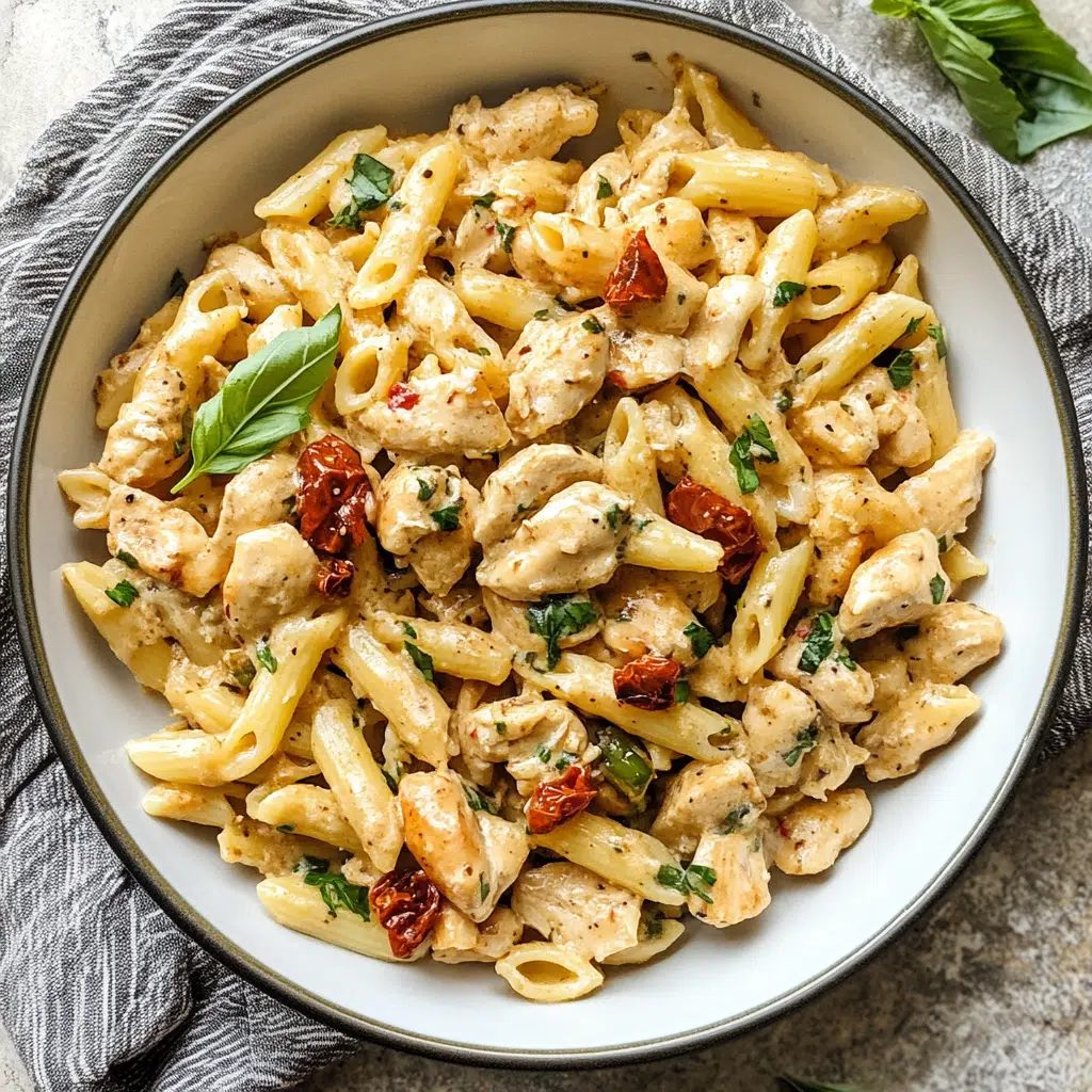- Combine Ingredients: Add the cooked chicken and pasta to the sauce, tossing to coat. If the sauce is too thick, add reserved pasta water to reach desired consistency.